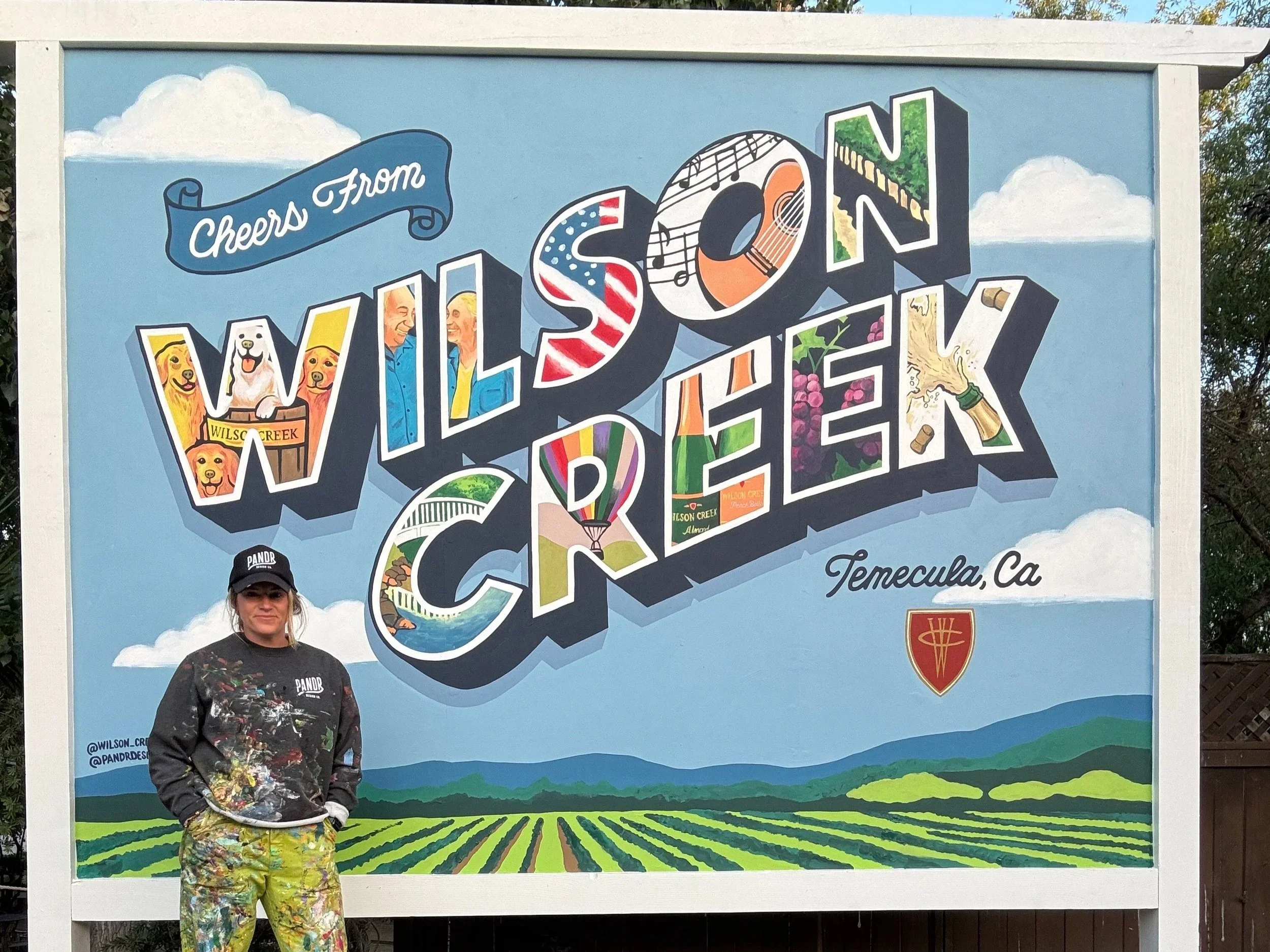 A fun mural for Wilson Creek Winery in Temecula, CA. Check out the inside of the block letters for a glimpse into what makes this winery “Wilson Creek.”