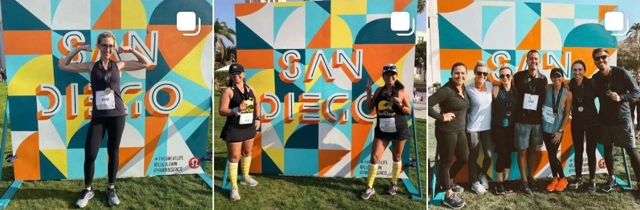 A great example of this is the 10k race that Lululemon hired me to paint a moveable mural for. I love running a good race, but it’s the thought of the after party that gets me to actually sign up. The brightly colored, geometric #Sweatlife mural that Lululemon had me install in the post race area set the tone for a fun, high energy morning FULL of sweaty selfies and photo ops. The best part is that Lululemon was then able to reuse the mural for any race they held in San Diego afterwards, and even put in their storefront later to add to the shop’s aesthetic.